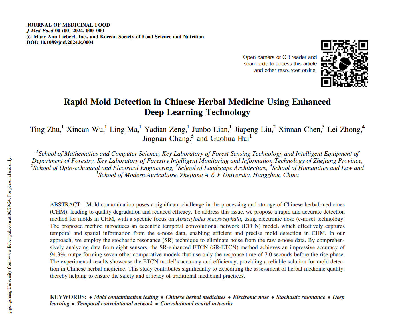 近日,公司K1体育大数据专业本科生在国际著名期刊《Journal of Medicinal Food》上发表题为“Rapid Mold Detection in Chinese Herbal Medicine Using Enhanced Deep Learning Technology”的高水平科学研究论文。