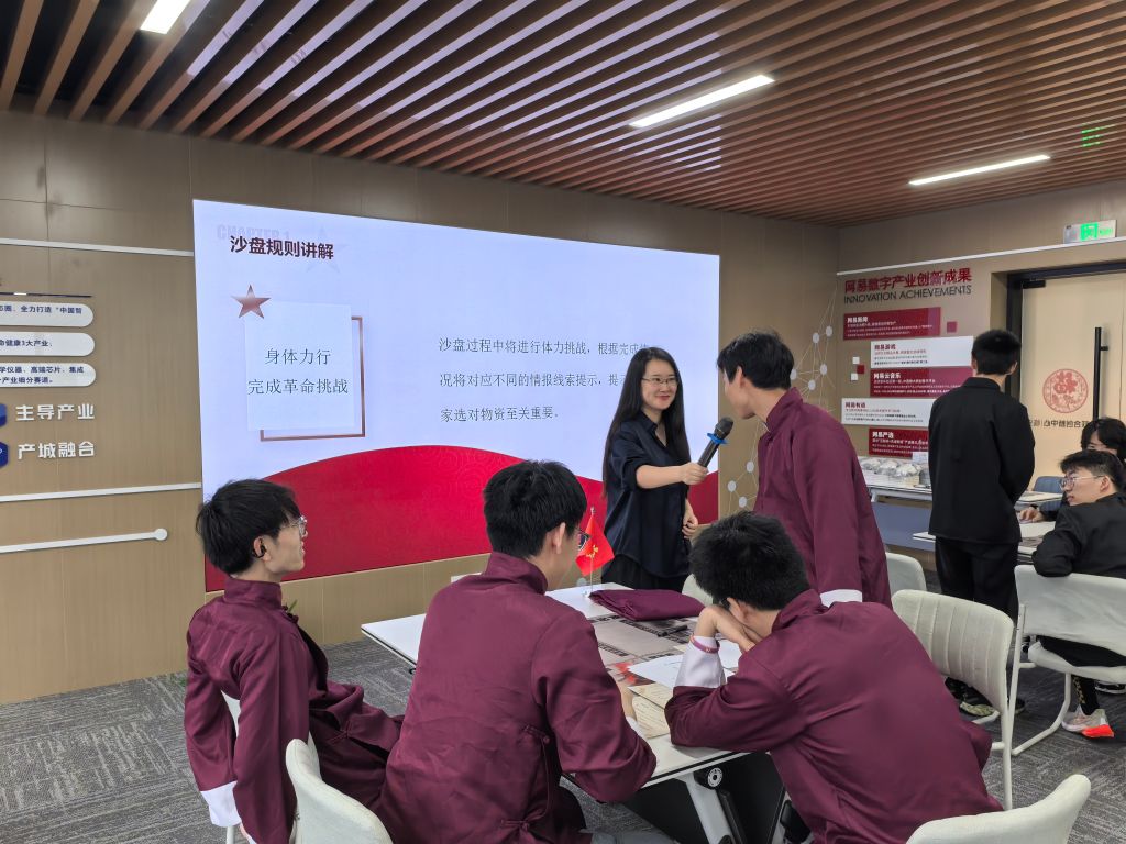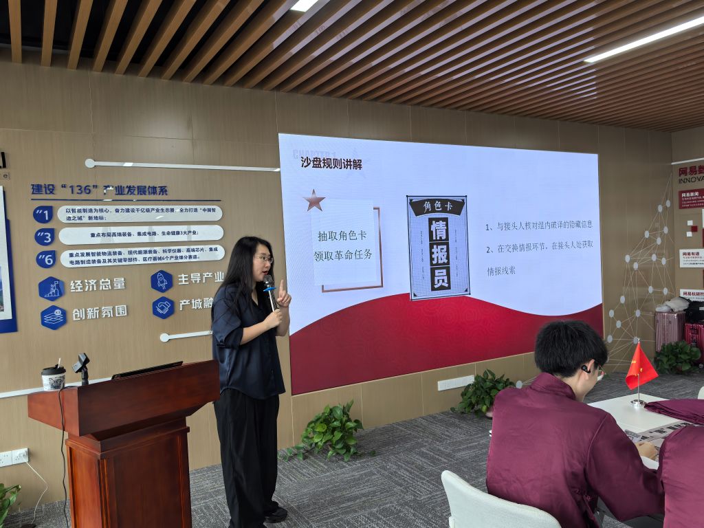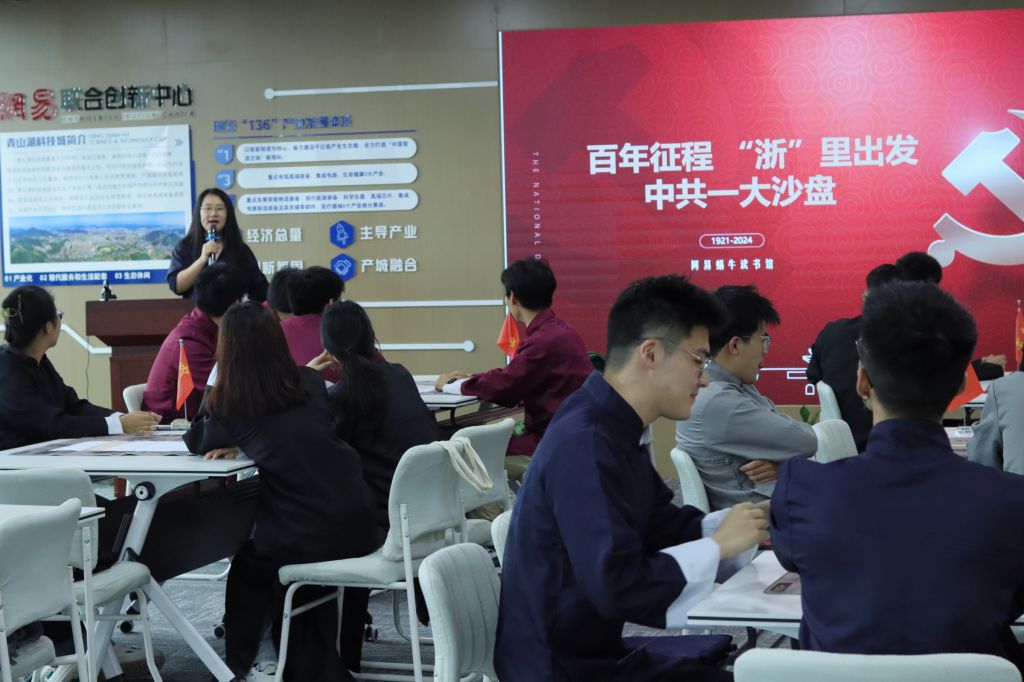 在庆祝中国共产党成立103周年之际,K1体育计算机专业员工第一、第二党支部组织党员、入党积极分子赴青山湖科技城网易联合创新中心,开展中共一大模拟沙盘红色主题教育活动。本次活动邀请网易蜗牛读书馆馆长周逸指导开展。