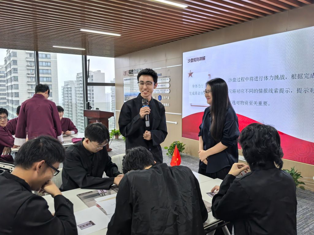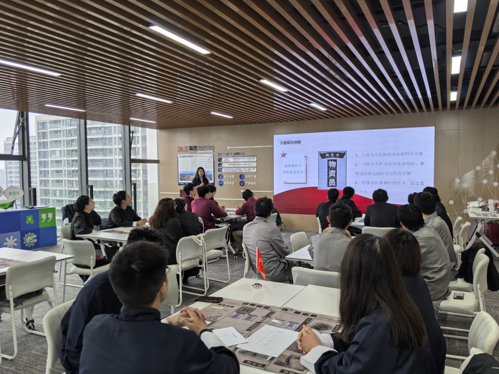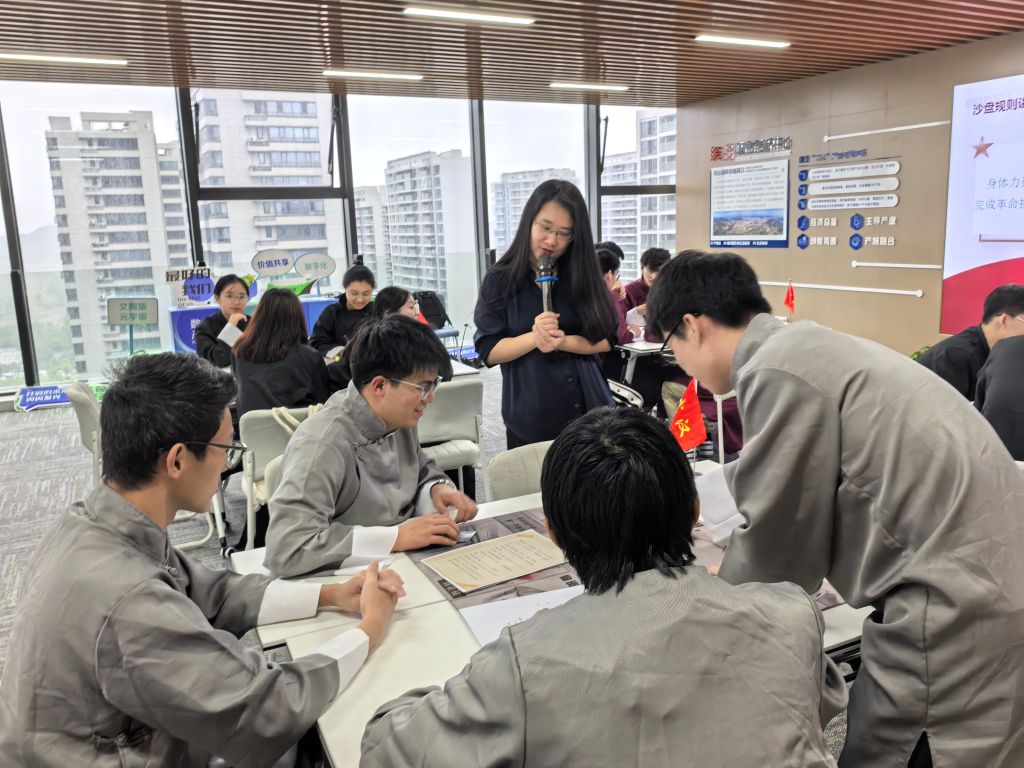 模拟沙盘共设置“百年征程、百年初心”、“红船记忆、不畏挑战”、“牢记使命、书写芳华”三个篇章。同学们在周馆长的带领下,从观摩、体验、模拟、感悟四个层面,学习中国共产党第一次全国代表大会的全过程。