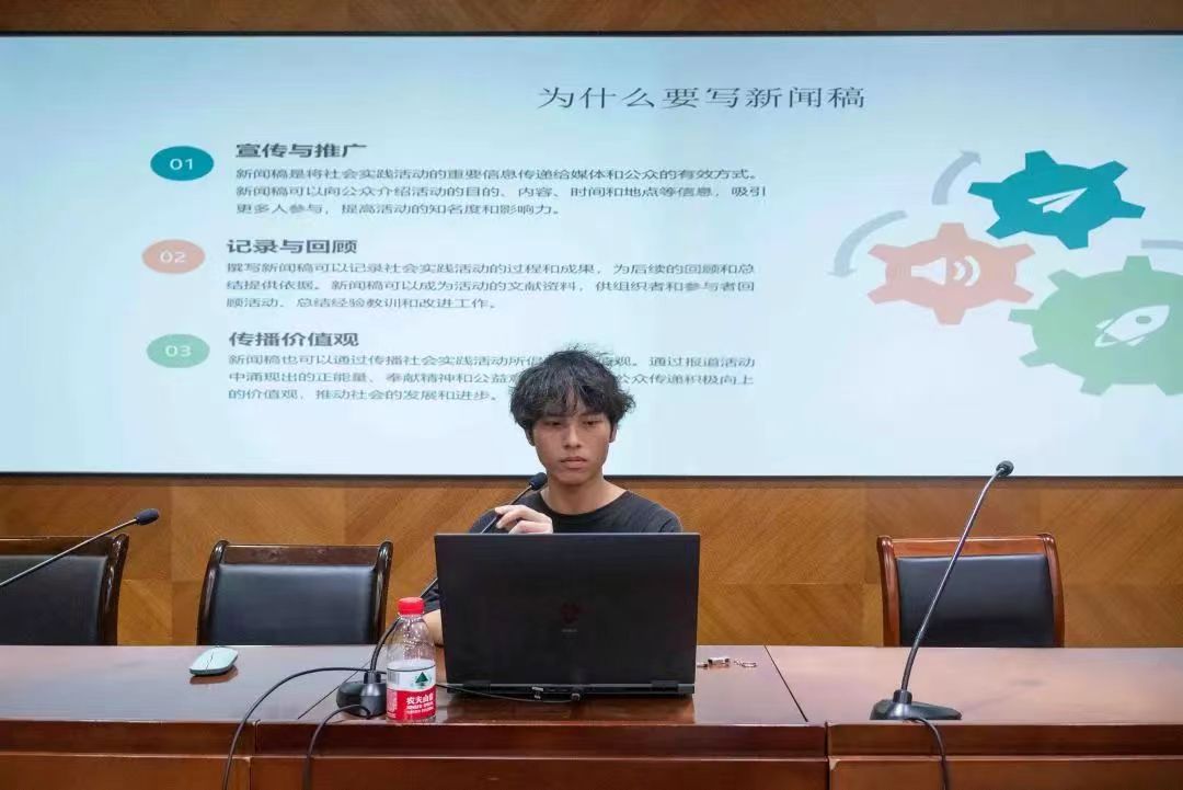 生活实践部的陈振扬同学就前期准备、出行安全、防暑降温、饮食安全、网络安全以及突发事件处理等方面为各实践团队进行安全教育培训,树牢“安全第一”的意识。