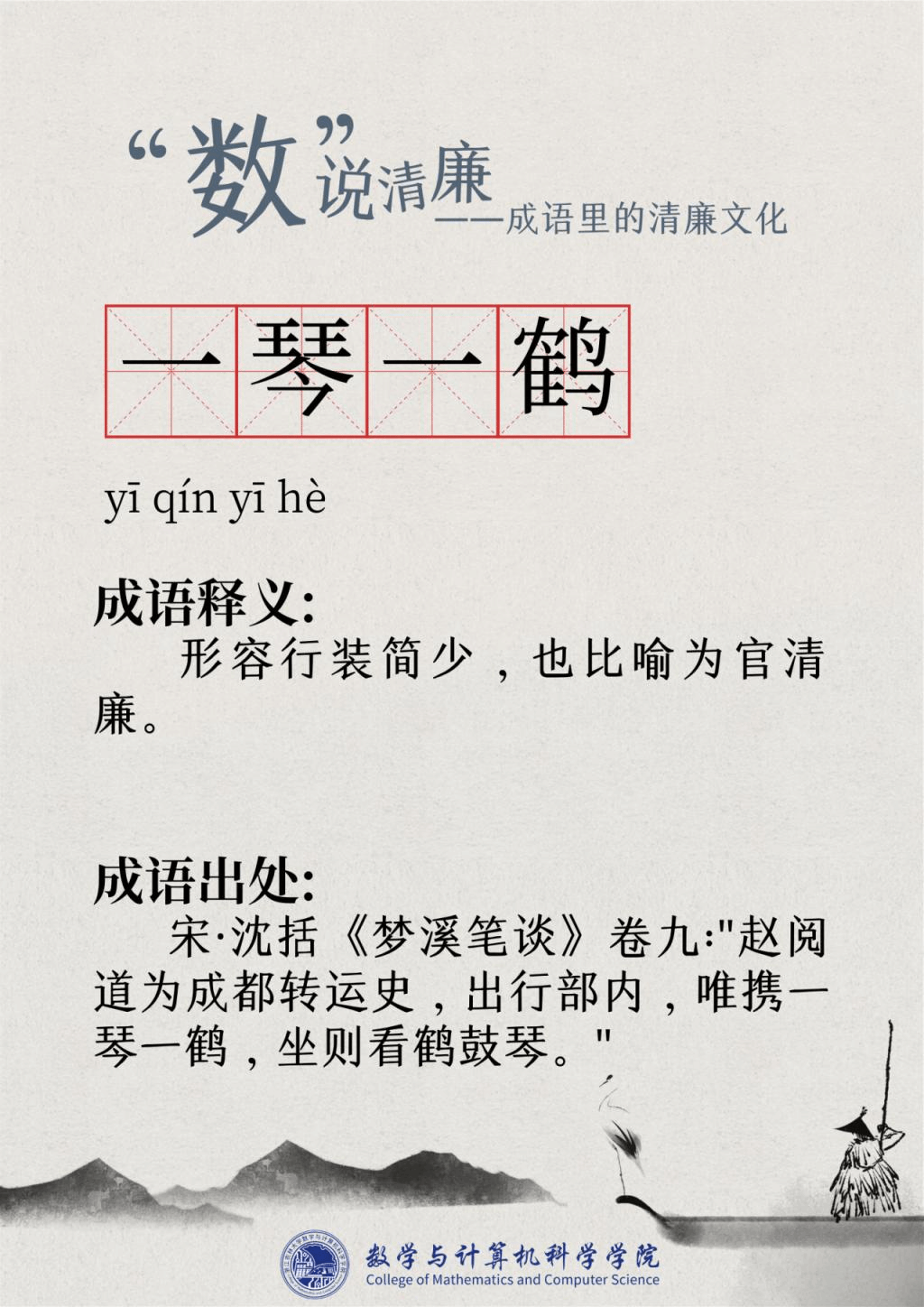 “廉洁”一词最早出现在屈原的作品“宁廉洁正直以自清”中。为人清廉正直从古至今都被视作立身处世最重要的品质之一。习近平总书记曾强调要“加强新时代廉洁文化建设涵养求真务实,团结奋斗的时代新风”。为深入挖掘中华传统文化中数字与成语诗词结合的廉洁要素,展现“廉洁”在中国传统文化瑰宝中浓墨重彩的独特地位,充分发挥清廉文化浸润校园、春风化雨的积极作用,K1体育现推出“数”说清廉——成语里的清廉文化系列文章,以传统文化之土壤培育清廉之花。