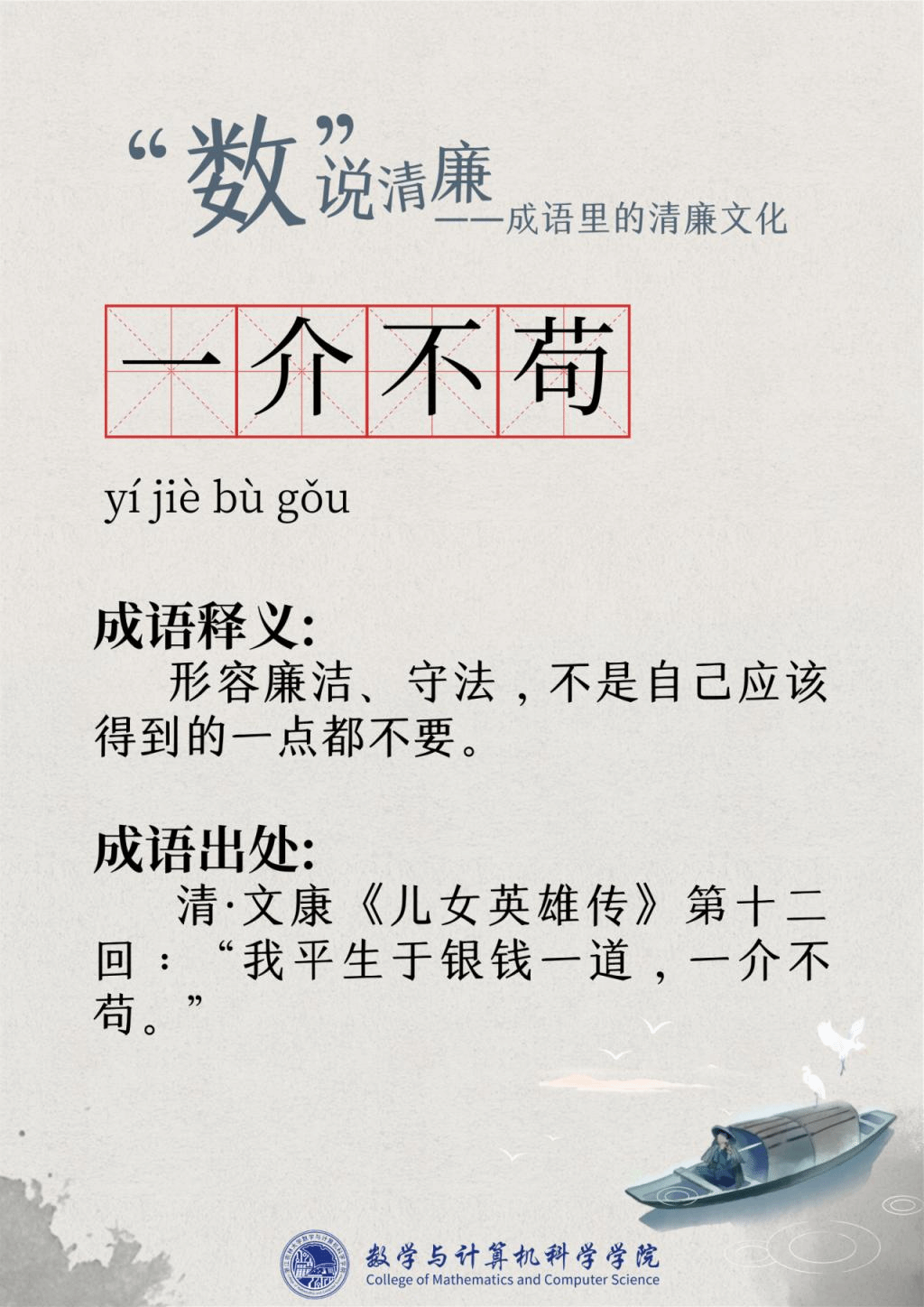 “廉洁”一词最早出现在屈原的作品“宁廉洁正直以自清”中。为人清廉正直从古至今都被视作立身处世最重要的品质之一。习近平总书记曾强调要“加强新时代廉洁文化建设涵养求真务实,团结奋斗的时代新风”。为深入挖掘中华传统文化中数字与成语诗词结合的廉洁要素,展现“廉洁”在中国传统文化瑰宝中浓墨重彩的独特地位,充分发挥清廉文化浸润校园、春风化雨的积极作用,K1体育现推出“数”说清廉——成语里的清廉文化系列文章,以传统文化之土壤培育清廉之花。