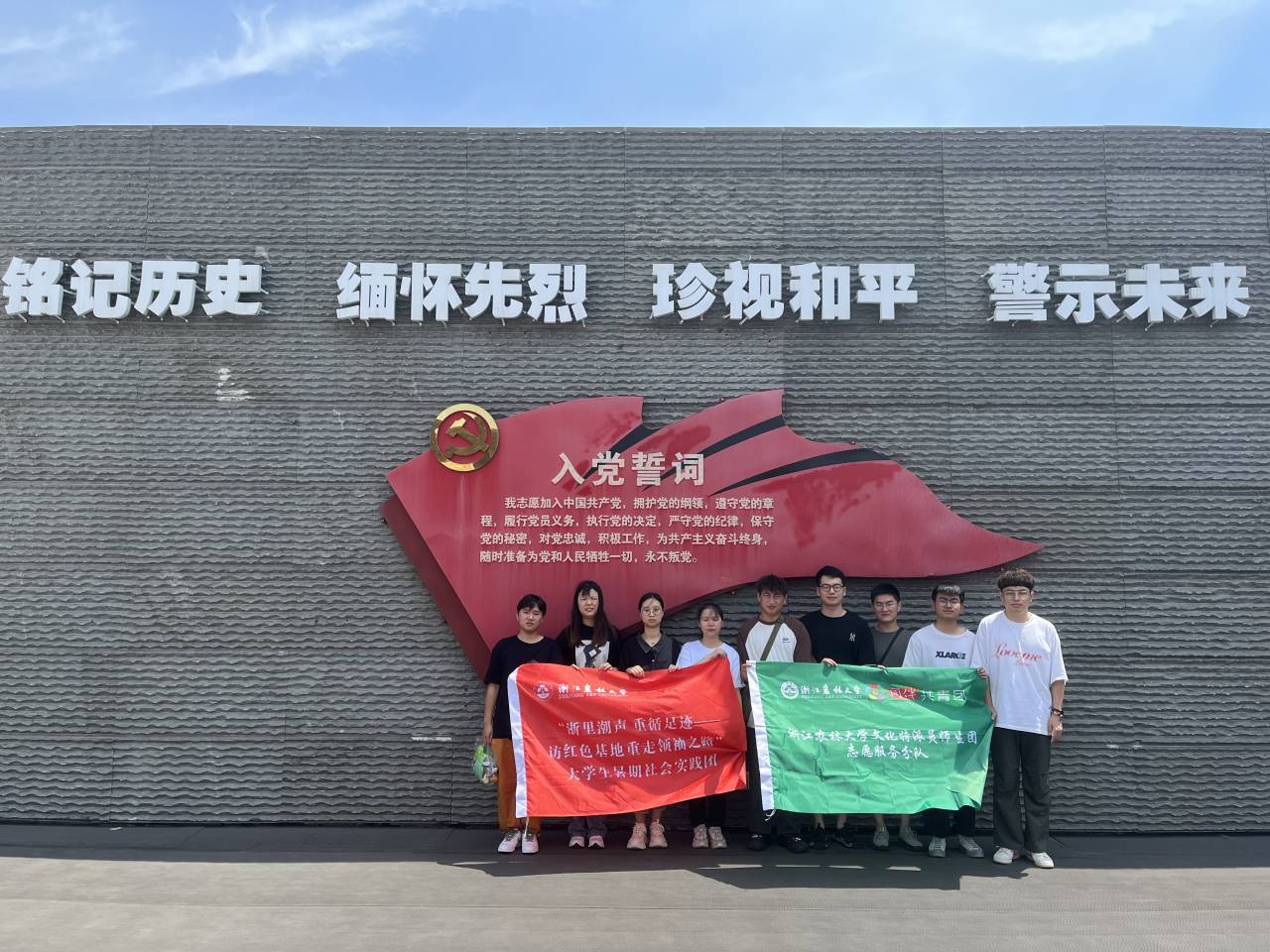 7月14日,K1体育“浙里潮声 重循足迹——访红色基地重走领袖之路”暑期社会实践团走进抗日战争胜利浙江受降纪念馆,踏寻红色革命足迹,强化红色历史学习。