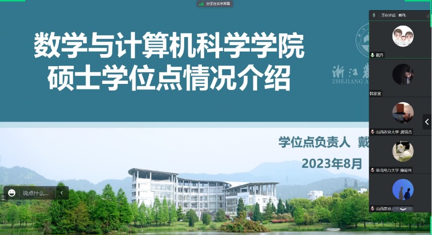 随后,公司硕士学位点主要负责人戴丹老师针对本公司的计算机科学与技术学硕点、电子信息专硕点、农业工程与信息技术专硕点和图书情报学专硕点这四个硕士学位点,介绍了历年考研数据、公司上一年度研究生录取情况、学位点概况、团队力量、学科优势、研究方向、培养特色、考试科目、招生激励政策、毕业去向、报考须知等内容,充分展示了各个学科专业的优势与亮点。