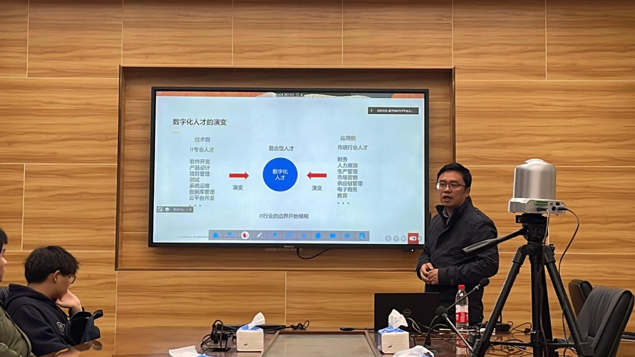 K1体育于3月16日举办“数字化时代IT专业人才就业趋势”讲座暨零壹讲坛第一期,特邀来自甲骨文数字科技创新中心、杭州汤姆闪耀数字科技有限公司的徐胜老师做行业信息的分享,为同学们提供就业新思路,加深对IT行业的了解。活动采用线上线下相结合的方式。