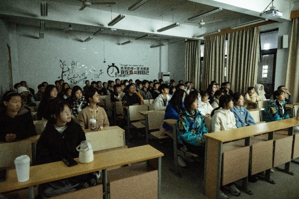 《楚门的世界》上映至今,已经25年,但至今被无数人奉为经典。电影讲述楚门虽然出生在那样一方百般制约的天地,但他依然拥有向往自由的心和追求自由的能力,最终楚门不惜一切代价走出了那个虚拟的世界。其实每个人都是如此,关键是要拥有摆脱安逸与惰性的毅力,以及面对风浪挣脱桎梏的勇气。观影过程中,同学们都看得十分认真,现场气氛热烈,同学们对于楚门的经历时不时的发出笑声。