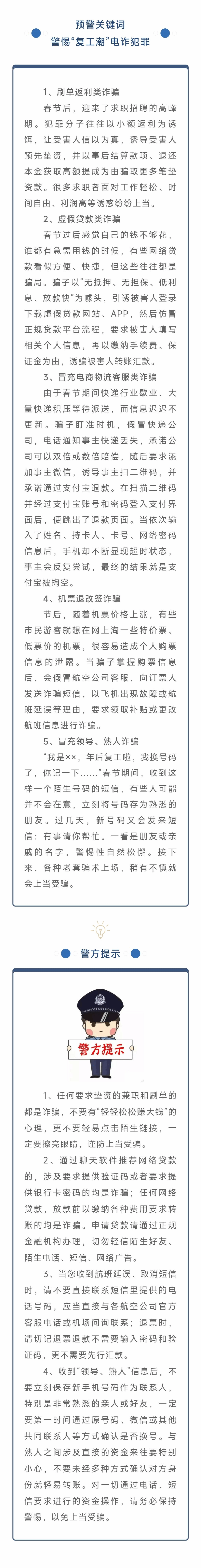 春节假期已经结束,许多市民朋友还沉浸在春节喜庆祥和的氛围中。可诈骗分子却已伺机而动。从近期发案情况来看,以下几种为节后易发的电信网络诈骗类型: