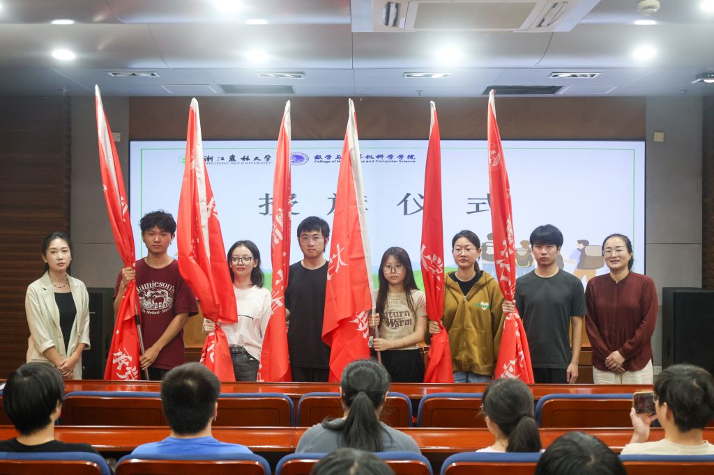 致辞结束后,黄萍和袁晓燕共同为实践代表团队授旗。