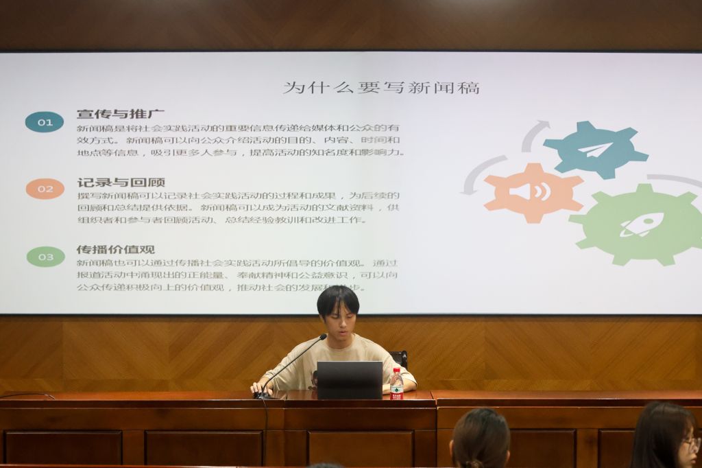 新媒体运营部卢建涛同学和摄影部叶骐毓同学分别为大家进行了新闻写作和摄影拍照培训。
