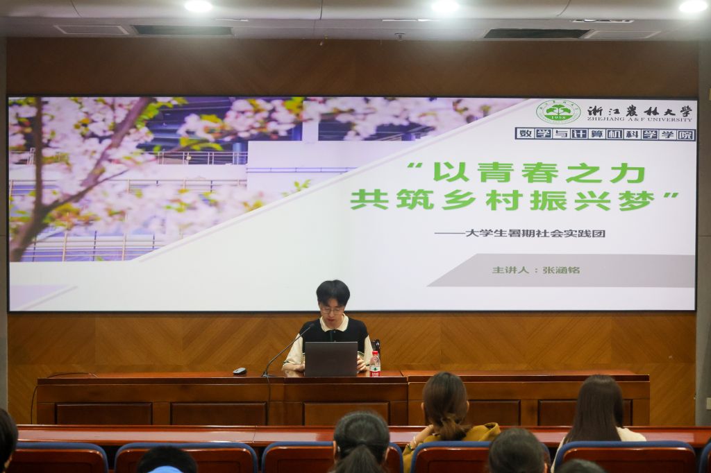 2023年暑期社会实践优秀团队代表,应统212班张涵铭同学以“以青春之力 共筑乡村振兴梦”为主题作经验分享,详细介绍了团队在实践各个环节中的做法和心得体会,预祝本次暑期社会实践队伍取得更加丰硕的成果。