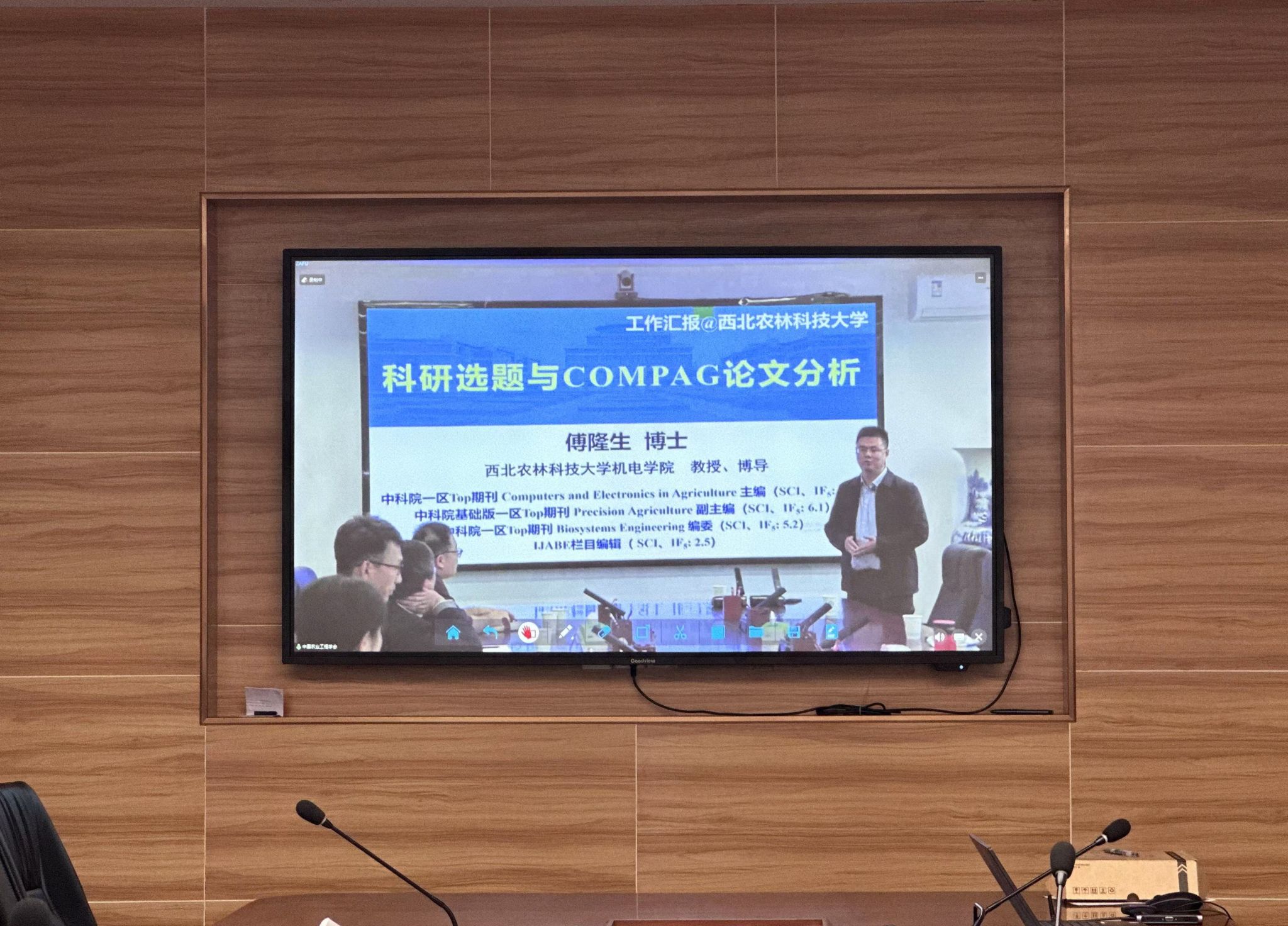 最后,傅隆生教授就“科研选题与《Computers and Electronics in Agriculture》论文分析”发表了见解。他介绍了农业工程领域前沿技术的发展趋势,并指出如何围绕国际热点问题开展科研工作,最终形成高水平学术成果。