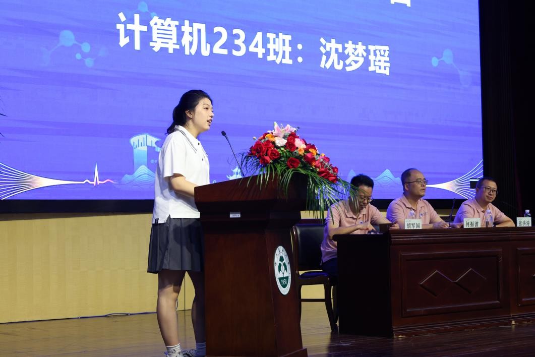 在校生代表计算机234班沈梦瑶同学、本科生新生代表应统251班朱泽轩同学、研究生新生代表数计研251班雍程翔同学先后发言。