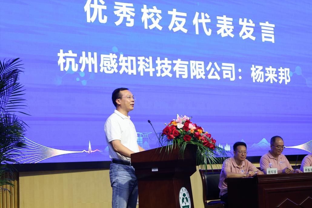 杨来邦深情回顾了在校生活,感谢母校老师在其学习期间的谆谆教诲和帮助,同时勉励新同学向下扎根、向上生长,努力成为对社会大有可为的人。