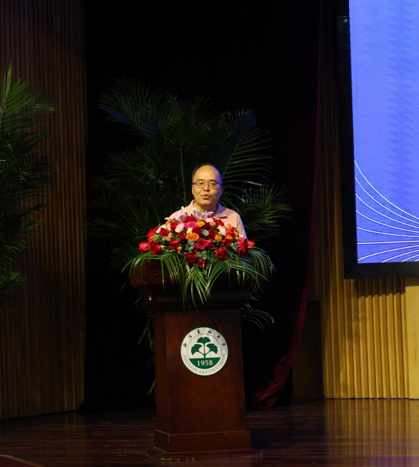 智能科学与技术专业教师董晨作为教师代表发言,鼓励同学们主动学习和建构性学习,保持对知识的敬畏和对问题的好奇,共同用智慧和汗水书写数计人的辉煌篇章。